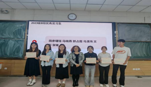 见习之前,学院开展系统化岗前培训,围绕课堂管理策略、教学沟通技巧、师德规范及安全事项等内容,为见习生筑牢实践基础。见习期间,全体学生深度参与早读管理、课堂观摩、教案设计、课后辅导等教学全流程,将外语教学法、二语习得理论融入真实课堂,协助设计趣味英语活动并参与双语教学实践。卓越教师团队及班主任全程跟进,深入各校听课评课,形成 实践-指导-反思 闭环。见习生以勤谨态度获见习学校师生一致认可,展现新时代师范生专业素养