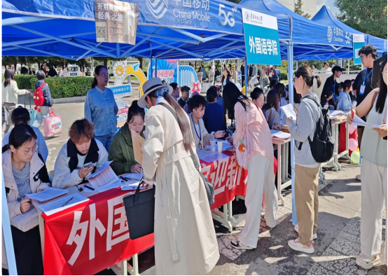 秋意渐浓,校园焕新。92上午,青海师范大学南门内外国语学院迎接点洋溢着热烈氛围。现场悬挂着 欢迎 2025 级新同学的醒目横幅。学院迎新志愿者们分工明确、热情饱满,向踏入校园的新生们送上了新学期的第一份问候。每当有新生及家长抵达,志愿者们便第一时间上前,主动接过行李箱、手提袋等行李,耐心询问新生姓名与专业,有条不紊地接收新生报到所需文件,逐份细致核对信息,全程高效顺畅,确保每位新生都能快速完成入学手续。