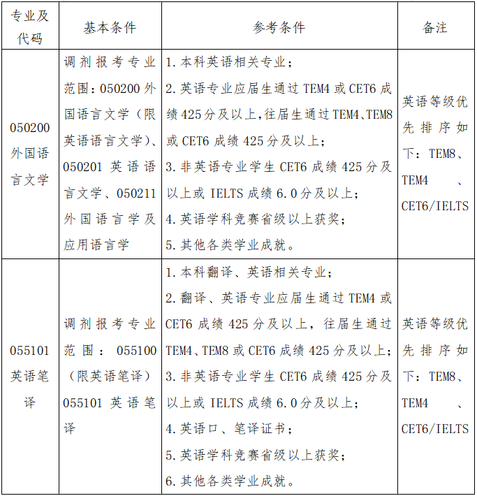 青海师范大学外国语学院硕士研究生调剂实施细则