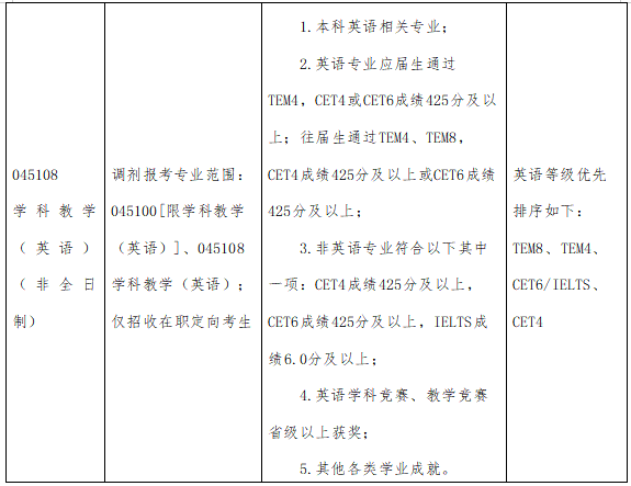 5.除外国语言文学外,我院接收调剂考生的外语考试语种为英语。