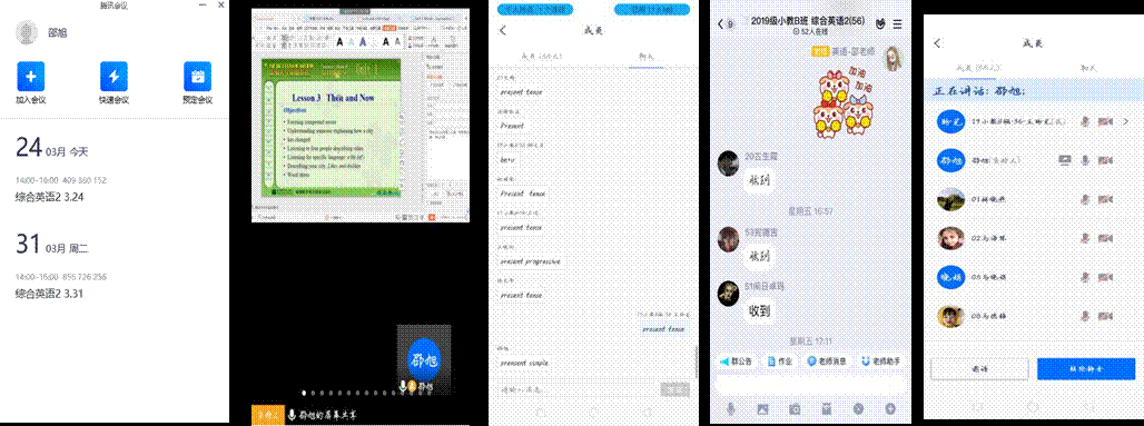 面对巨大的压力,我首先考虑课程特点,在线上进行了雨课堂、云班课、腾讯会议、QQ群课堂等多个平台的线上培训,并比较其功能、分析利弊、反复尝试、充分演练,最终确定使用雨课堂+腾讯会议+QQ家校群为主要的授课模式。与此同时,通过中国大学慕课网、网易精品课等多个网站和平台下载和整理了相关教学资源,为新学期开学做了充分准备�