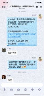 为做好在线教学,从一月底就开始,刘海云老师积极参加学校组织的在线教学培训,认真总结学校推荐的各大在线教学平台优缺点。例如,雨课堂直播效果好,且能回放,但极容易崩溃,在培训的时候就领教了它的厉害,所以只能作为课堂互动的辅助平台;腾讯会议虽不支持课堂回放,但平台稳定性强,不容易卡顿,语音教学比较流畅;QQ群语音通话效果良好,但不方便屏幕共享。通过多次测试与比较,我确定了自己的教学方式:腾讯会议+QQ�+批改网。同时,我在开学前对本学期所带的专业课《高级英语II》分别建立了课程QQ班群及微信班群,提前准备课程大纲、课件、教案和教学进度计划表,不断熟悉腾讯会议、QQ群课堂等平台操作运用,分别组织了多次模拟授课测试,精心制作多个在线教学预案,并及时推送和下载了与课程密切相关的中国大学MOOC上学习资源资料�