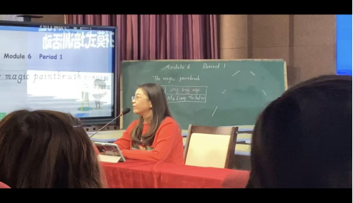 活动伊始,南京师范大学附属中学新城小学张雨萌老师给大家展示了一节生动有趣的英语阅读教学�Module 6 Unit 1 It didn't become gold.