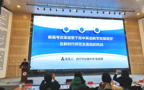 主旨论坛中,太原市教研科研中心高中英语教研员李莹、洛阳师范学院公共外语教研部主任张艳红、西宁市城西区英语教研员朱玉萍、西宁市总寨中学校长陈斌青先后围绕“全国基础教育改革新动向及师范生培养”“大学英语教学改革与实践”“践行新理念、落实新课标”“新高考改革背景下高中英语教学发展现状及新时代师范生面临的挑战”为题作了专题报告,介绍了当下基础教育英语教学改革的重点、难点和热点,分析了新高考改革背景下的高中英语教学发展现状,探讨了基于主题意义的单元整体教学,提出在教学评一体化理念的引领下,在践行英语活动观的实践中,在项目化学习的探究中让核心素养落地生根,真正实现立德树人育人目标。