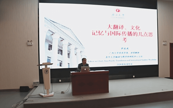 715日上午,肉番动漫 邀请广西大学罗选民教授题为“大翻译、文化记忆与国际传播”的讲座讲座由院长李增垠主持,文学翻译教研室教师、全体研究生以及2021本科生到场聆听讲座。