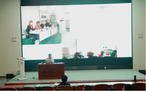 罗选民教授还强调了国际学术的显性参与,总结了大翻译与中国文化“走出去”战略的密切关系,提出中国的翻译活动应在个体文化记忆的基础上转移到集体文化记忆中去。只有这样,中国才能在构建人类命运共同体方面发挥重要的、积极的作用。在场师生深受感染,由衷地体会到了大翻译背景下翻译活动所承担的社会责任与历史使命,真切领悟到家国情怀和国际视野的关系