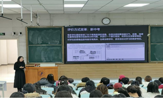 讲座中,贾妍兰老师以深厚的教学教研经验为基础,围绕项目式学习(PBL)的核心内涵展开系统讲解,清晰界定了项目式学习“以项目为载体、以问题为导向、以成果为驱动”的本质特征,区别于传统课堂教学模式的独特优势。针对英语教学场景,贾老师重点分享了项目式学习的设计方法与实施路径,从主题筛选、目标设定、任务拆解,到小组协作、过程指导、成果评价,通过具体教学案例拆解关键环节,强调要结合英语语言技能训练、跨文化交际能力培养等核心目标,设计兼具实践性与创新性的项目任务。