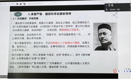 讲座尾声,苏艳教授与在线师生就晚清翻译的现代性意义、科学精神在当代的传承等话题进行了深入交流与解答。本次讲座史料详实、见解深刻,不仅梳理了“科学”概念的东渐之旅,更揭示了翻译在思想启蒙、知识体系重构与国民性塑造方面的巨大力量,为外院师生理解翻译的社会功能与历史使命提供了极具启发的视角。