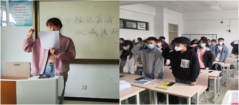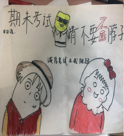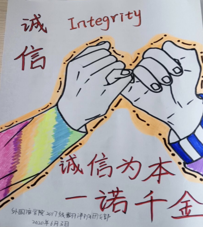 活动中,各团支书组织全体同学通过电视视频、典型案例、学生手册等形式学习了诚信做人、诚信考试的重要性。学院团总支负责人发起了“诚信考试”的活动倡议,并带领学生重温我校考试规则,每个同学都在诚信考试承诺书上郑重地签上了自己的名字,承诺严格遵守校纪校规、诚信考试。19级师范B班马淑娟、雷万菊通过亲身经历为大家讲述了“诚信”小故事,18级日语、翻译两班每位同学都从自身角度阐述了对“诚信”的理解,并展开讨论,大家纷纷认为“诚信”体现在生活的方方面面,“人无信而不立,诚信是立足之本,是民族之魂”。热烈的讨论使同学们在收获到丰富诚信知识和做人道理的同时,也明白了牢固树立守信光荣、失信可耻的道德观念。活动最后,各团支书带领大家宣读了“诚信考试宣誓词”并组织设计了“诚信考试”宣传海报。