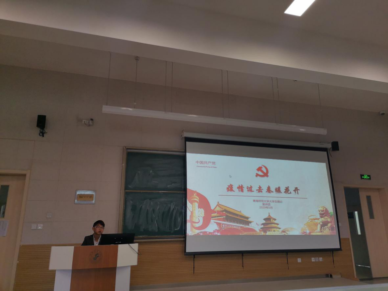 为了促进大学生深入学习贯彻全国抗击新冠肺炎疫情表彰大会精神,致敬抗疫功臣,激发学生爱国热情,引导大家争当时代青年先锋,积极奉献祖国,青海师范大学外国语学院团总支组织各团支部开展了以“学习全国抗击新冠肺炎疫情表彰大会精神”为主题的团学活动。