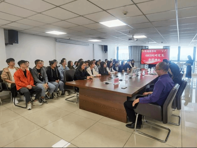2023年9月8日下144时,外国语学院在高科院一号会议室召开了2023级研究生新生见面会。本次会议由陈敏老师主持,学院党总支书记马金芳、院长李增垠、副院长妥洪岩、研究生党支部书记都庭芳、研究生教研室主任者兴隆、研究生导师代表邵旭和李建富老师及外国语学院2023级全体研究生参加了此次会议。