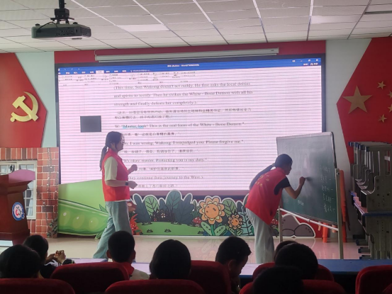 2025611日,我和其他三位志愿者怀着激动的心情来到泉湾小学,为孩子们带来了一堂生动有趣的英语戏剧课。课程以经典故事《孙悟空三打白骨精》为主题,通过中英文结合的方式,让孩子们在表演中学习英语,感受语言的魅力。