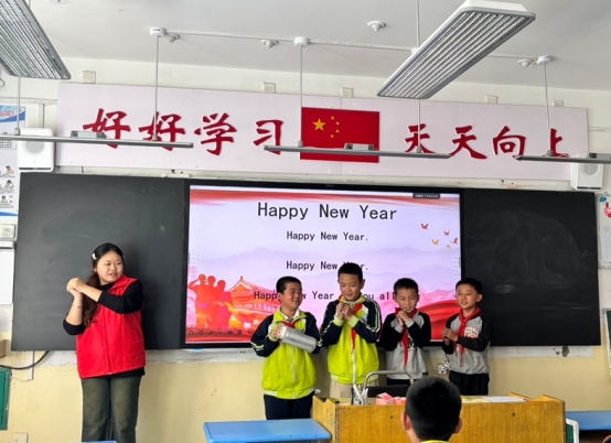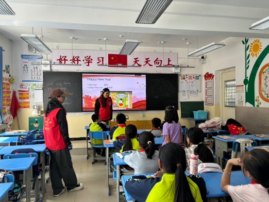 3名大二英语专业志愿者带领11名小学三至六年级学生开展了60分钟的英文歌曲《Happy New Year 》志愿活动。学生们熟练掌握了歌曲演唱,对歌词中的生词和语法有了较好的理解和运用。通过活动,学生的英语听力、口语和词汇量都有显著提升,对新年文化也有了更深入的认识。