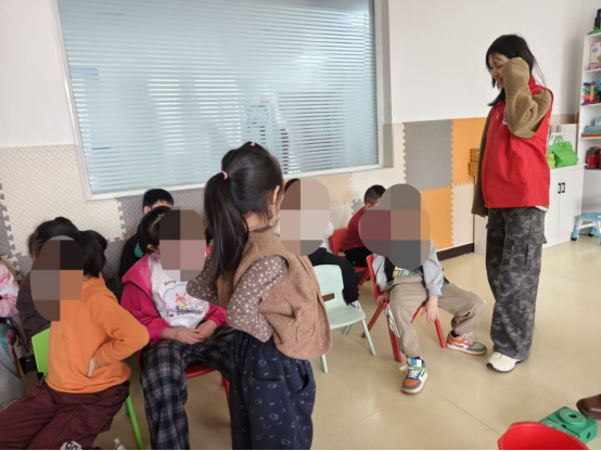 今天下午,有个小女生让我印象格外的深刻,她很乖,坐在那里吃老师刚发的零食。她会拿出来递到我嘴边说“姐姐你吃”,会主动帮我扔掉垃圾,甚至还要帮我捶腿。当她歪着头,睫毛弯弯,眼睛亮亮地问我“姐姐,我好不好?你喜欢我吗”的时候,我的心都要化了,想着做志愿哪有苦和累,只有笑和甜。还有一个小男孩,趴在用泡沫板铺成的地面,他对我挥挥手以示你好,随后便乖乖地在那做专注训练。如果有什么被我指出做得不好的地方,他也会扬起大大的笑脸改正。